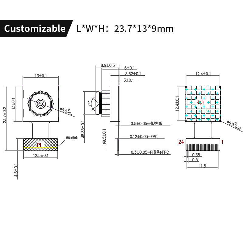 Interface:12bit parallel DVP (Customizable MIPI USB module)